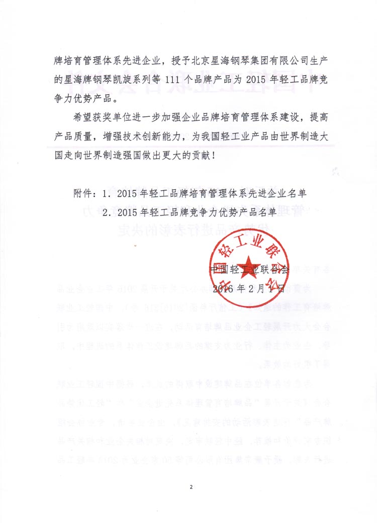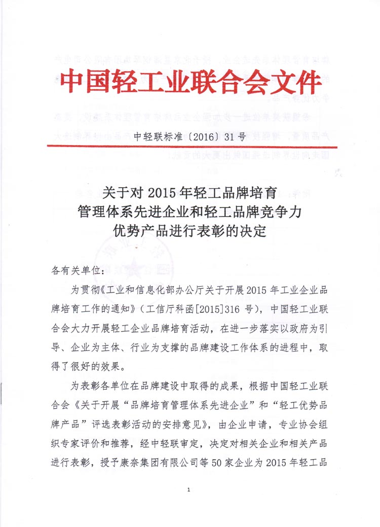 2015轻工品牌竞争力优势产品名单