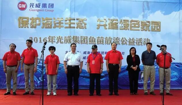 比赛期间,光威集团还组织了以“保护海洋资源 共建绿色家园”为主题的2016光威鱼苗放流公益活动,与会嘉宾、选手积极参加其中,一起在威海小石岛景区放流黑鲪鱼苗5万尾。