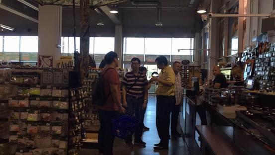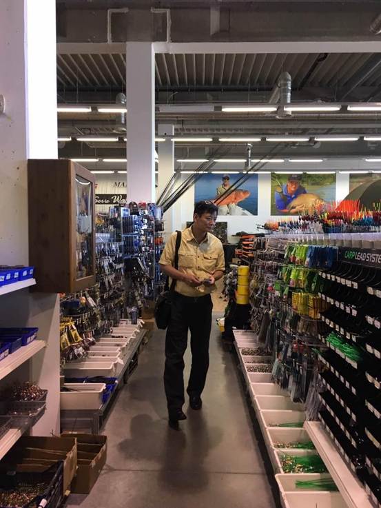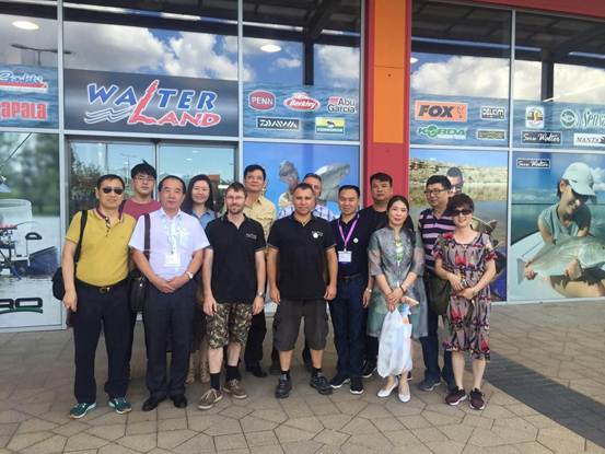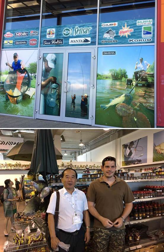 应随团参观企业家的要求,田宝全秘书长带领大家前往布达佩斯市内的大型渔具超市参观。其中,占地面积 850平方米的 WATER LAND大型渔具连锁超市吸引了企业家的极大兴趣,他们专心的在各个产品陈列柜台参观,与渔具超市老板交谈,了解欧洲当地市场的钓具行业发展状况及相关钓具产品的销售状况。