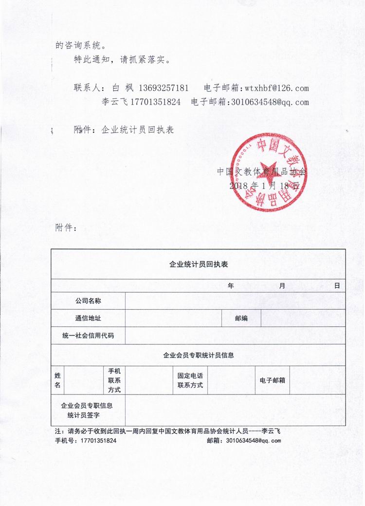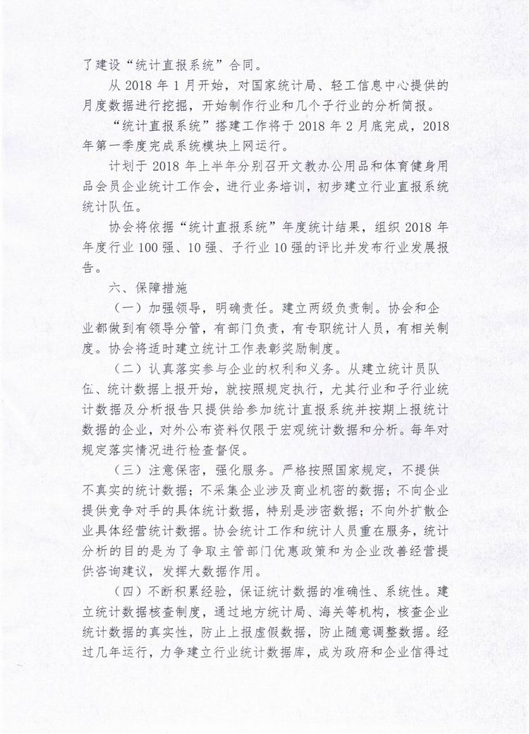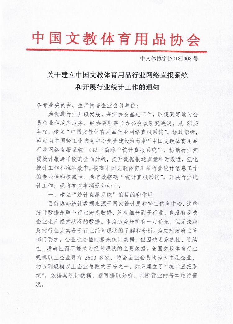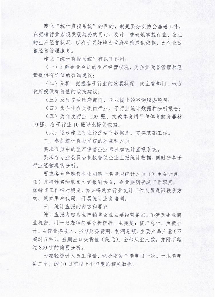 关于建立中国文教体育用品行业网络直报系统和开展行业统计工作的通知
